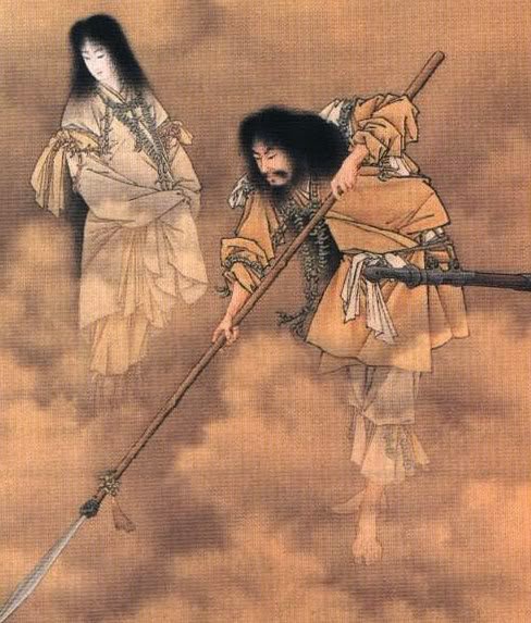 Um casal, que gera todos os outros kamis do mundo, mas quando chega a vez dos kamis do fogo, eles se tornam tão ardentes que matam Izanami. Ela, prometendo retornar, diz que vai para o Submundo e que lá ele não poderia ir, tendo de esperar. Izanagi espera, mas depois de muito tempo resolve quebrar a promessa e vai atrás de Izanami. Chegando no Submundo, vê ela dando luz a vários demônios, enquanto é comida por larvas. Ela, percebendo a audácia de seu marido, manda os demônios o perseguirem. Fugindo dos demônios, Izanagi pega o seu pente de ossos que usa para prender o cabelo e o quebra, jogando seus pedaços no chão. Os demônios, famintos, devoram os brotos de bambu que surgiram do pente. Izanagi foge dos demônios, e rolando uma pedra enorme, os prende no Submundo. Izanagi fica furioso por Izanami lhe trair, que usa os poderes do sol e destrói todos os demônios.
